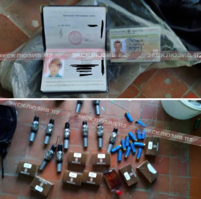 Тело преступника обнаружили на втором этаже - он покончил с собой. При нем нашли сумку с СВУ. В сети появилось фото, на котором сотрудники правоохранительных разложили ее содержимое.