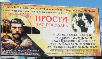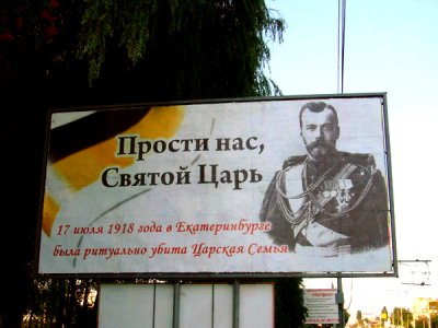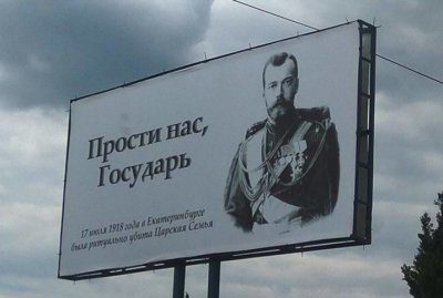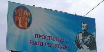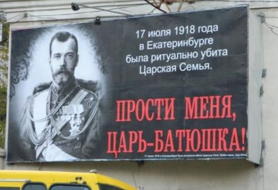 В городе Ефремов Тульской области на улице Максима Горького появился "покаянный" билборд - на большом рекламном щите наклеено фото царской семьи с надписью "Прости нас, Государь!"