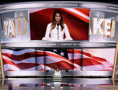 На фото: Дональд Трамп, его жена Меланья и сын во время открытия звезды Дональда Трампа на аллее славы в Голливуде, США, 2007 год.© AFP 2018 / Robyn Beck Выступление Меланья Трамп стало центральным событием на Национальном съезде Республиканской партии в Кливленде.Выступление Меланья Трамп стало центральным событием на Национальном съезде Республиканской партии в Кливленде.© AP Photo / Kathy WillensВ 2004 году Дональд Трамп и Меланья Кнаус обручились. Они поженились 22 января 2005 года в Епископальной церкви Bethesda-by-the-Sea в Палм-Бич (Флорида). Пышный прием в честь их свадьбы проходил в усадьбе Трампа в зале площадью 17000 кв. футов.В 2004 году Дональд Трамп и Меланья Кнаус обручились. Они поженились 22 января 2005 года в Епископальной церкви Bethesda-by-the-Sea в Палм-Бич (Флорида). Пышный прием в честь их свадьбы проходил в усадьбе Трампа в зале площадью 17000 кв. футов.© AP Photo / Kevork DjansezianФото Меланьи печатали на своих обложках такие известные издания, как Vogue, Harper's Bazaar, Ocean Drive, In Style, New York Magazine, Avenue, Allure, Vanity Fair, Self, Glamour, Elle. Также она снялась в картине "Образцовый самец" (2001).Фото Меланьи печатали на своих обложках такие известные издания, как Vogue, Harper's Bazaar, Ocean Drive, In Style, New York Magazine, Avenue, Allure, Vanity Fair, Self, Glamour, Elle. Также она снялась в картине "Образцовый самец" (2001). /