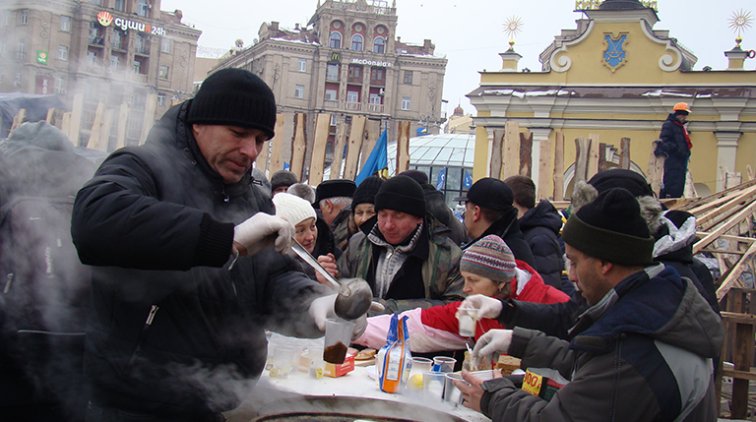Казалось, ситуация вернется к оптимистичному раскладу начала той зимы. А какие ароматные борщи кипели по майданному городку! Народ беспрерывно жевал сало и разнообразные вкусняшки, потоком доставляемые сюда от разнообразных благотворительных фондов.
