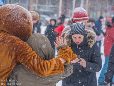 Люди на площади в это время активно танцевали, грелись горячим чаем и глинтвейном, а также делали фото на фоне елки и рождественской иллюминации.