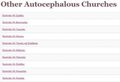 В разделе «Патриаирхаты и Автокефальные Церкви» значатся: