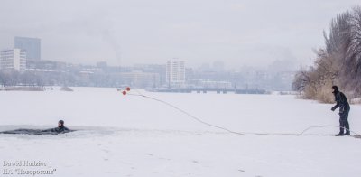 Во время данного мероприятия специалисты группы водолазно-спасательных работ аварийно-спасательного отряда специального назначения МЧС ДНР продемонстрировали любителям зимней рыбалки различные способы спасения человека из ледяных ловушек, в том числе с помощью конца Александрова.