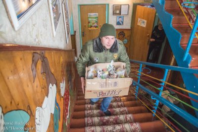 Волонтерская группа «Тепло Сердец» при поддержке автомобильного социального проекта FTU и Приазовского Казачества передали детям прифронтового населенного пункта Старомихайловка, расположенного вблизи Донецка, наборы конфет, детскую посуду и средства гигиены.