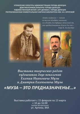 Выставка под названием «Муза – это предназначенье…» организована при поддержке управления культуры города Донецка, Дома работников культуры Донецка, а также художественного музея «Арт-Донбасс».