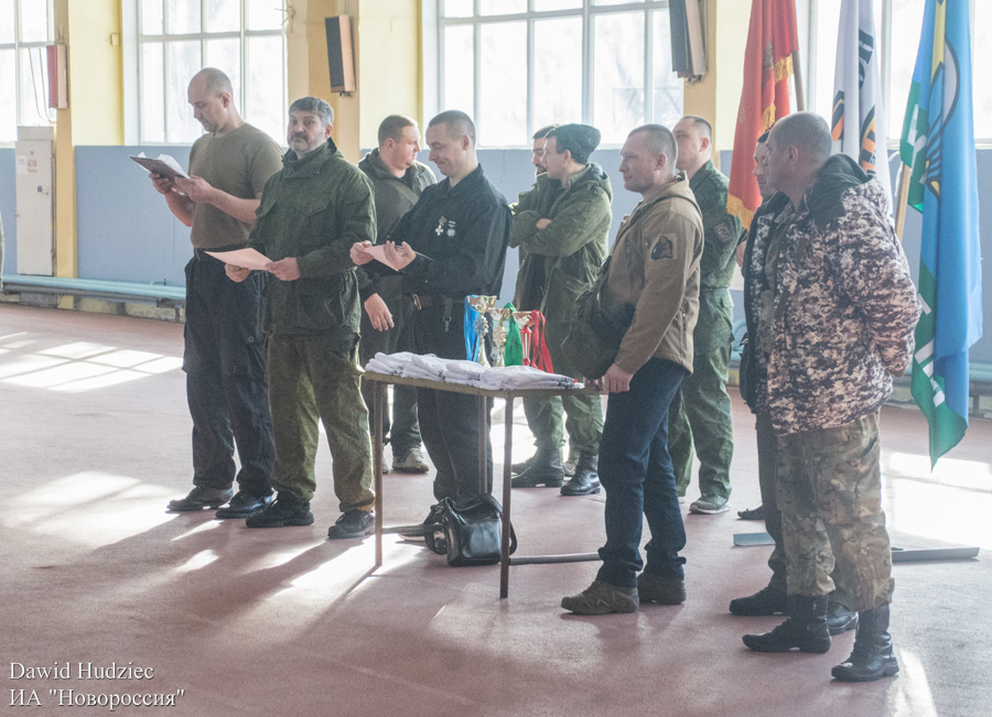 В свою очередь представитель батальона «Восток» (позывной Абдула) приветствовал участников турнира словами: «Для меня большая честь присутствовать среди вас, стоящих в авангарде защитников русского славянского мира. Благодаря вам будет шанс у малых народов, как мой. Сегодня день вывода отдельного контингента советских войск, выполнявший свой интернациональный долг в республике Афганистан. В свое время «демократический» Запад финансировал радикальный экстремизм для смены власти в этой стране. И сейчас, они будут стараться сломить наш дух, потому что убить всех наших бойцов невозможно. Благодаря героизму советских воинов в Афганистане, война, которая сейчас идет, была отсрочена на 30 лет. Цена такой отсрочки – 15 тысяч погибших и десятки тысяч раненных советских воинов. Вы, как никто, понимаете и осознаете всю важность вашей миссии, мы же, представители малых народов всегда поддержим вас плечом к плечу, бок о бок. Честь имею», – сказал представитель батальона «Восток».