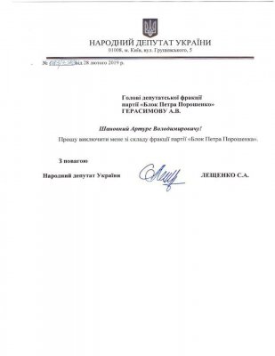 Вслед за ним президентскую партию покинули депутаты Лещенко и Залищук.