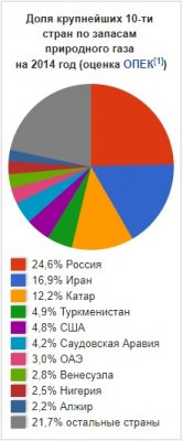 Доля крупнейших 10-ти стран по запасам природного газа на 2014 год (оценка ОПЕК).
