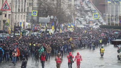 Участники акции протеста, организованной сегодня в Киеве нацистами группировок «Нацкорпус»* и «Нацдружины»*, выдвинулись колонной к администрации действующего президента Украины Порошенко. К шествию нацистов (по предварительным данным, маршем двигались около двух тыс. человек) также присоединился основатель карательного батальона «Азов»* Билецкий. Радикалы кричали: «Слава Украине», «Слава нации», «Свинарчуков-мародёров за решётку». Об этом сообщает издание «Политнавигатор».