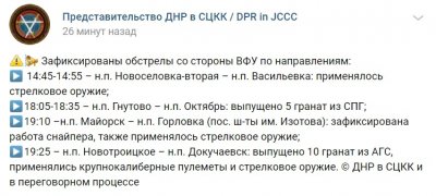Также сегодня сообщалось, что ВСУ за сутки выпустили по территории ДНР свыше 60 боеприпасов.