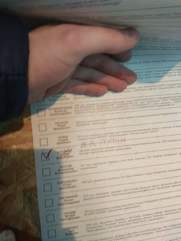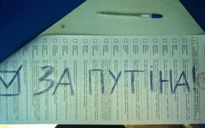 Жители Украины голосуют на выборах президента за Владимира Путина. Соответствующие фото бюллетеней опубликованы в соцсетях.