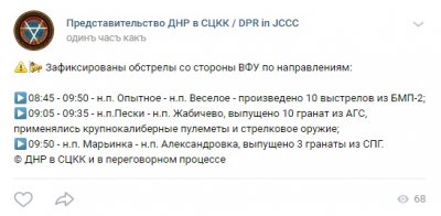 Утром, 6 апреля, оккупационные подразделения ВСУ начали массированный обстрел ДНР с нескольких направлений, сообщает представительство ДНР в СЦКК.