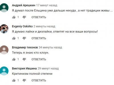 Пользователи сети в комментариях под видео жестко высмеяли поведение Порошенко, назвав его «клоуном», «днищем» и сравнив с покойным президентом России Борисом Ельциным.