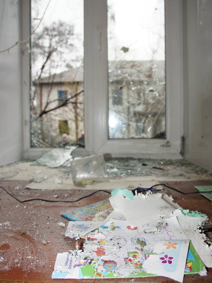 «Очередной обстрел пригорода Первомайска, п.Золотое. Ранена девочка 11 лет. Ребенок сидел у окна и играл за компьютером. Мина прилетела в 5 метрах под окно», — прокомментировал фотографии Ромас.