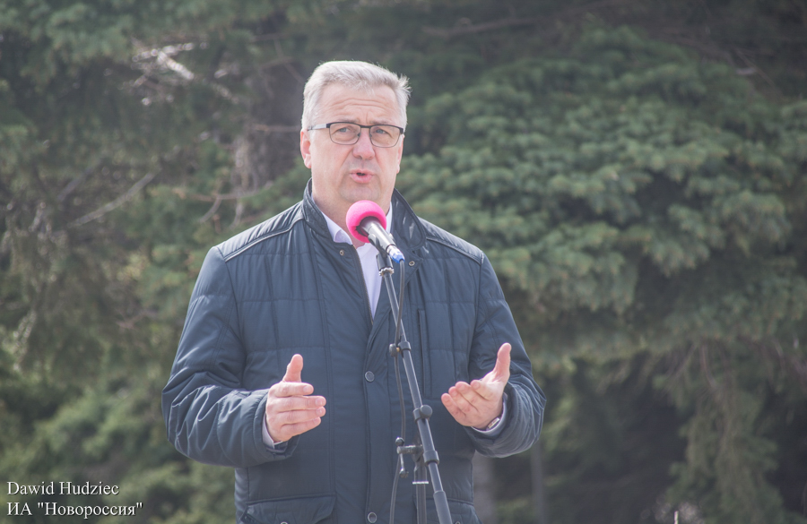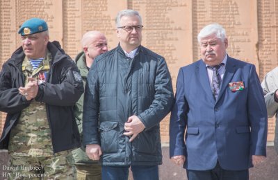 После приветственных слов почетных гостей из Российской Федерации к присутствующим обратился депутат Народного Совета Владимир Савелов: «Мы собрались здесь, чтобы отдать дань уважения нашим героям, которые благодаря своему мужеству и отваге смогли выбить врага с нашей земли. Наша задача – передавать память об их подвиге из поколения в поколение, и не повторять ошибок прошлого».