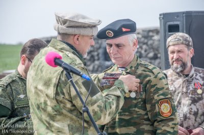 В ходе митинга прошло награждение военнослужащих ДНР, в их числе был активист ОД «ДР» Абдул Джабар Рафи.