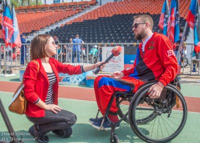 Сегодня, 26 апреля на беговых дорожках РСК «Олимпийский» прошел мини-марафон инвалидов-колясочников. Мероприятие было проведено в рамках проекта «Республика для всех» Общественного Движения «Донецкая Республика».