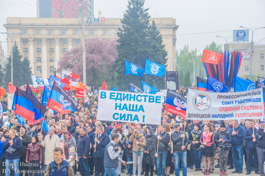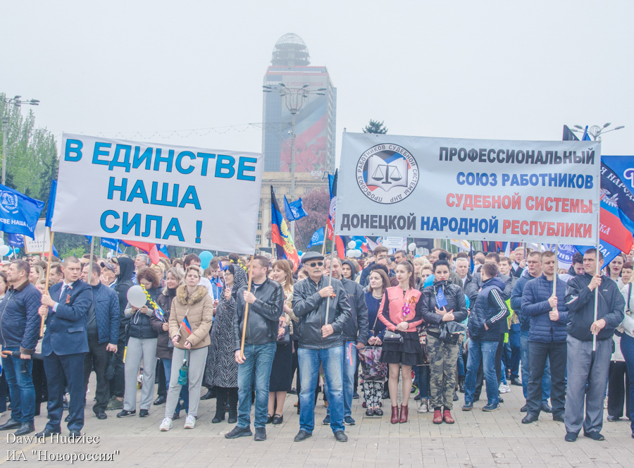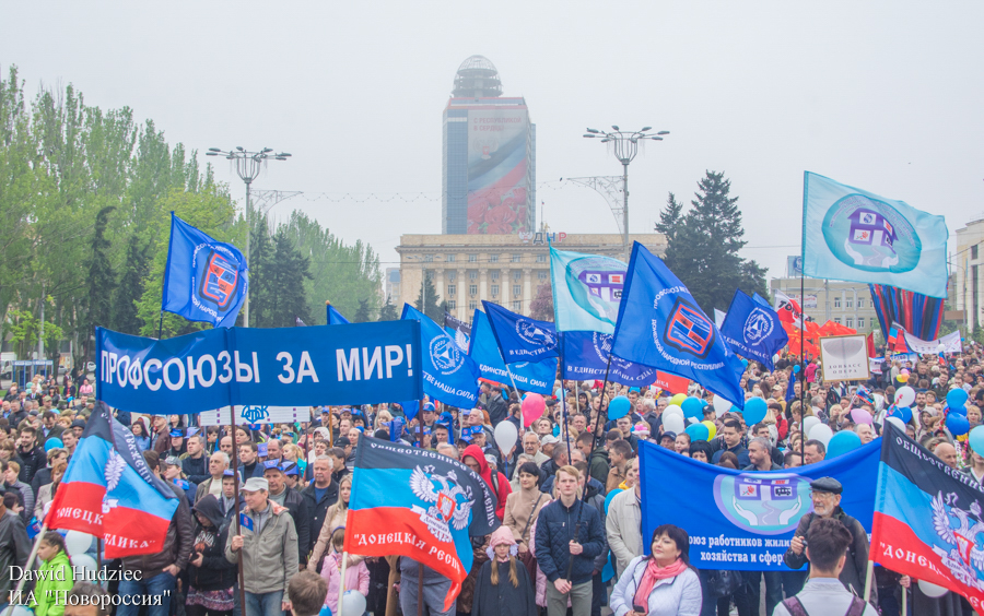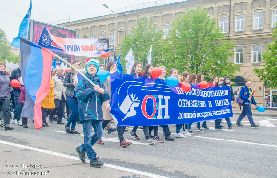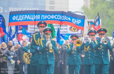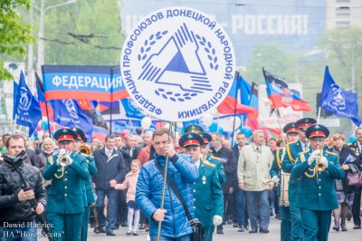 Сегодня, 1 мая в Донецке состоялось праздничное шествие представителей профсоюзов и трудовых коллективов ДНР, посвященное Международному Дню солидарности.