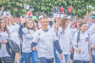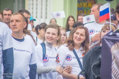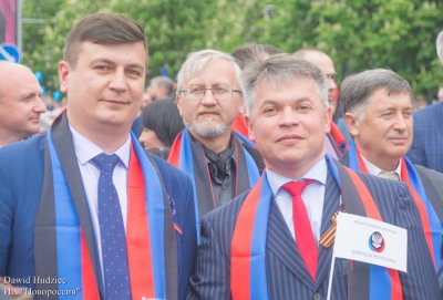 На сцене участников шествия приветствовали члены правительства и депутатского корпуса ДНР, профсоюзных и общественных организаций, а также гости столицы.