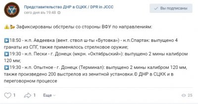 Также сегодня украинские войска обстреляли из минометов села на донецком направлении.