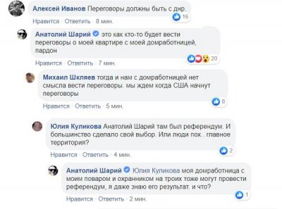 «Я сравнил, сравнивал и намереваюсь сравнивать «власти республик» с домработницами, с водопроводчиками и с другим обслуживающим, не самостоятельным персоналом», — подчеркнул Шарий.