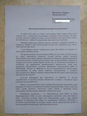 31 мая мать убитого журналиста и публициста Олеся Бузины Валентина обратилась к президенту Украины Зеленскому с официальным заявлением о личном приеме. Об этом сообщил адвокат Кузьмин.