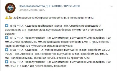 Напомним, ВСУ за минувшие сутки 20 раз нарушили режим прекращения огня, выпустив по территории ДНР 220 боеприпасов.