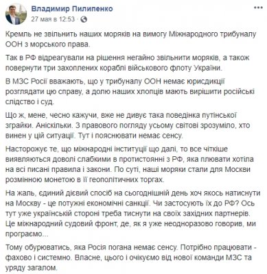 К сожалению, единственный действенный способ на сегодняшний день хоть как-то надавить на Москву — это мощные экономические санкции», — написал Пилипенко.