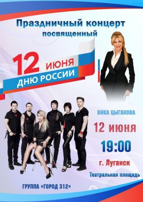 Известная российская певица Вика Цыганова и поп-рок-группа «Город 312» 12 июня выступят в Луганске с праздничным концертом, посвященным Дню России. Об этом сообщили в Министерстве культуры, спорта и молодежи (МКСМ) ЛНР.