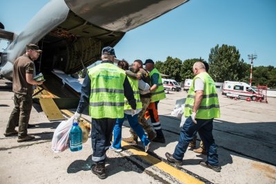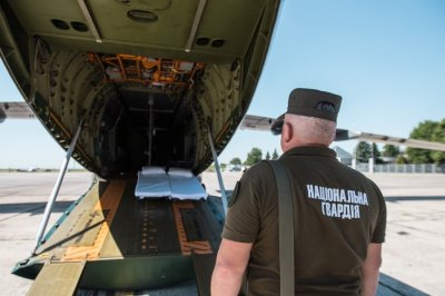 Военный самолет Ан-72 Нацгвардии Украины доставил в Киев из Днепропетровска девятерых раненых боевиков нацбатальона «Азов», входящего в состав мариупольского полка Нацгвардии.