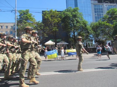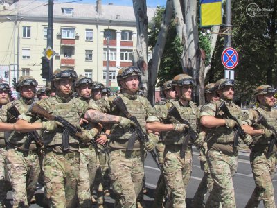 В субботу, 15 июня, в Мариуполе состоялся парад в честь пятой годовщины оккупации города украинскими боевиками. В параде приняли участие боевики батальона «Азов»*, Нацгвардии, пограничники, а также украинские полицаи.