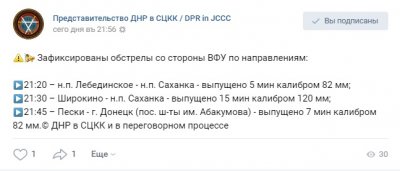 В субботу вечером украинские вооруженные формирования нанесли массированный минометный удар по ДНР, сообщает представительство Республики в СЦКК.