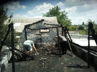 В сети обнародованы фото с места обстрела украинскими вооруженными формированиями жилого массива в поселке Ясное. Напомним, вчера украинские боевики обстреляли этот населенный пункт зажигательными снарядами.