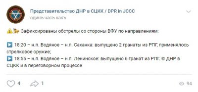 Сегодня также сообщалось, что ВСУ за сутки выпустили по территории ДНР 60 боеприпасов.