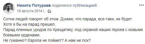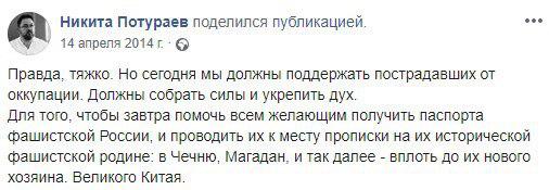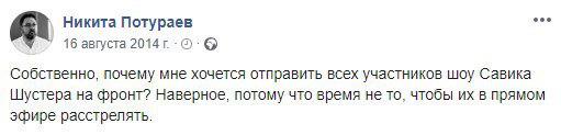 Он привел записи Потураева в Facebook 2014 года, где тот высказывается в адрес жителей Донбасса.