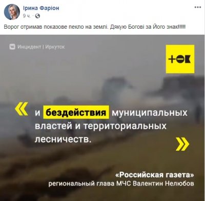 Украинская нацистка Фарион поблагодарила «бога» за лесные пожары в России.