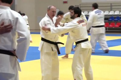 Глава государства встретился с представителями сборных команд по боксу, дзюдо и вольной борьбе. Затем он сам переоделся в кимоно и провел тренировку на татами вместе с несколькими олимпийскими чемпионами - Натальей Кузютиной, Мансуром Исаевым, Бесланом Мудрановым, Нифантовым Иваном.