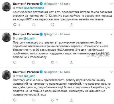 "Роскосмос" имеет бюджет почти в 20 раз меньше НАСАвского. Это для нас большая проблема с точки зрения поддержки перспективных проектов. Но это вопросы не к "Роскосмосу", - написал он (орфография сохранена).