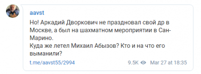 Ранее СМИ сообщали, что экс-министра открытого правительства Михаила Абызова задержали именно во время визита к Дворковичу на день рождения. Как выяснилось, бывший вице-премьер праздновал юбилей за границей.