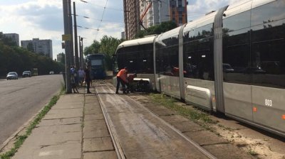 В КП Киевпастранс сообщили, что это связано с техническими причинами. Однако по данным журналистов, с рельс сошел трамвай Электрон.