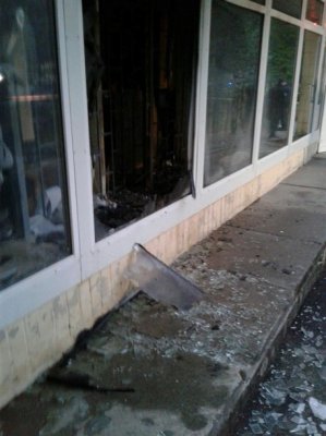 По предварительной информации, пожар начался из-за того, что злоумышленники бросили бутылки с зажигательной смесью.