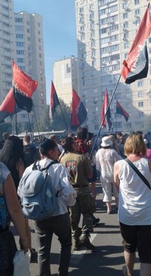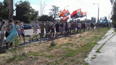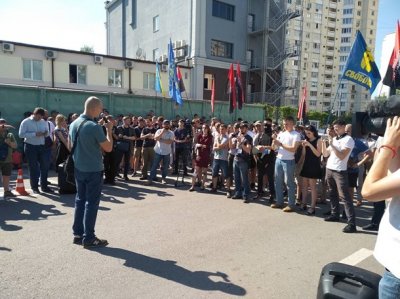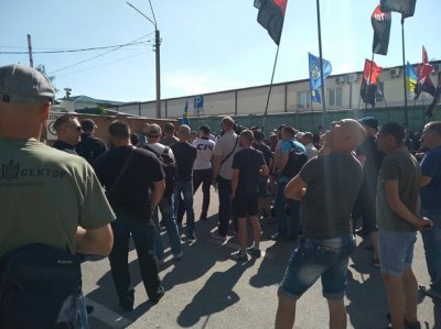 Представители радикальных организаций С14, Свобода и Правый сектор в четверг, 21 июня, пикетируют штаб патрульной полиции Киева. Об этом сообщается на страницах организаций в соцсетях.