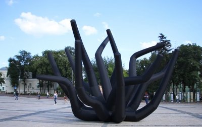 На Михайловской площади в Киеве установили пятиметровую надувную скульптуру в виде черных щупальцев. Арт-объект открыли во вторник, 26 июня, в Международный день поддержки жертв пыток, сообщает пресс-служба Центра информации по правам человека.