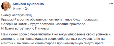 А во время матча с Испанией украинские общественные деятели с трудом верили в происходящее. Политолог Олег Волошин пообещал своим подписчикам, что у России еще обязательно будет траур: