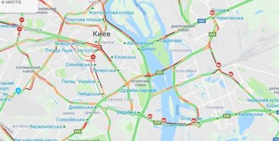Многочисленные пробки на дорогах образовались в Киеве утром в пятницу, 19 апреля. На столичных дорогах произошло 14 авария. Об этом свидетельствуют данные сервиса Google Maps.