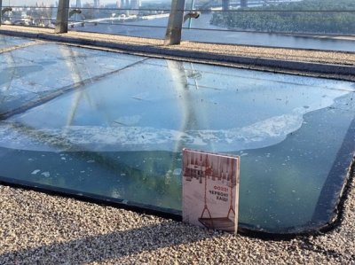 На стеклянном мосту в Киеве обнаружили очередную проблему: в стеклянное покрытие проникли вода и грязь, так как зазор между стеклом и бетоном на столько большой, что в него удается поместить книгу. Об этом 28 мая сообщил Алексей Копытко в Facebook.