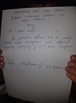 Ректор прибыл в КНУ к митингующим, которые устроили бессрочную акцию протеста с требованием уволить Портнова и пообещал подписать приказ об увольнении экс-чиновника.