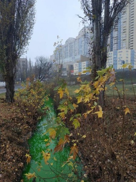 Фото: Сергей Юрченко/Facebook Река Дарница стала зеленой