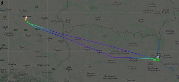 Как видно на графике полета, самолет после нескольких кругов над Киевом развернулся – и улетел обратно в Варшаву. На сайте аэропорта статус рейса указан как "отменен".