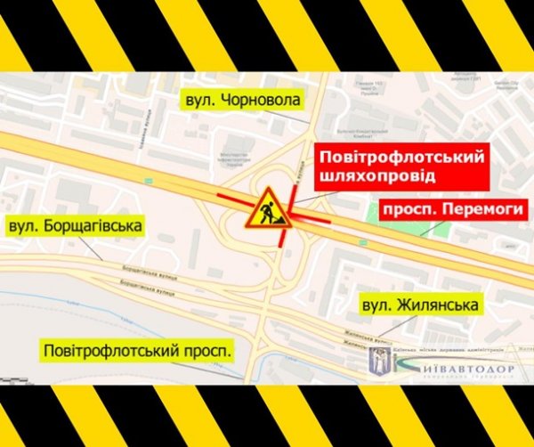 Фото: 112.ua В Киеве на месяц ограничат движение на Воздухофлотском путепроводе